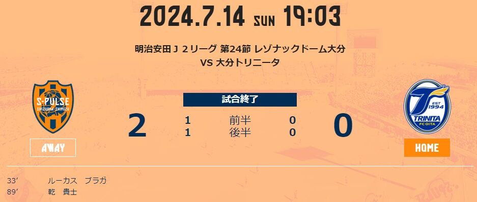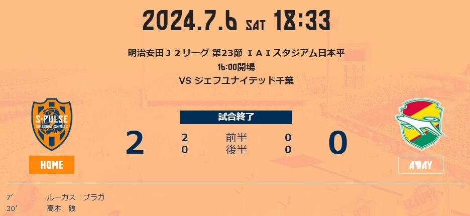 親善試合とはいえ、最近の清水っぽい流れになった。なかなかシュートシーンに持ち込めないものの、最初のシュートをブラガが沈め、「ホームで先制すれば実家並みに落ち着く」という今季の清水らしく、以降はピンチはありながらも落ち着いて試合を運んだ。