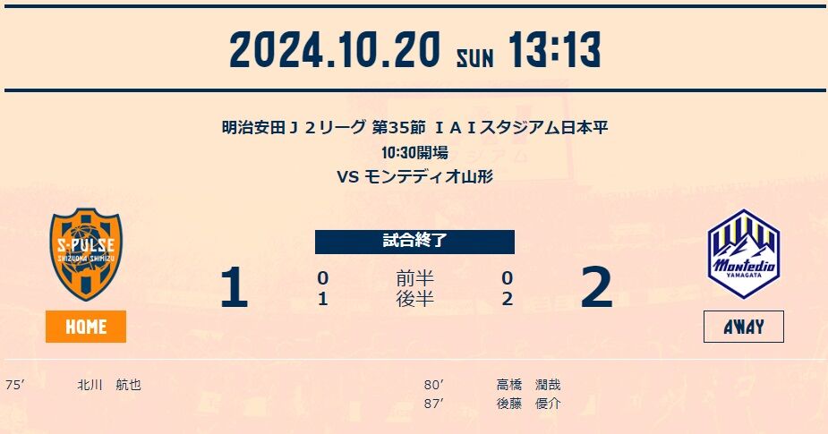 それで、試合終了後に、FC横浜VS岡山の試合をダイジェストで観て、ちょっと心境が変わった。はっきり言って、今J2で一番強く、また競争が激しいのは、プレーオフ進出に向けしのぎを削っている千葉、岡山、仙台、山形だろう。サッカーというのは、状況次第で波がある。あのフリエですら、死に物狂いの岡山には、4失点することもあるのだ。だとすれば、シーズントータルで結果を出したチームこそ勝者であり、曲りなりにも清水が再び順位表のトップに立ったのだから、今日のところは喜んでいいのではないか。シーズン終盤は、とにかく「結果」であり、近年成し遂げられなかったその「結果」を、今こうして達成したのだ。今はファミリーとともに、この結果を喜ぼう。そんな心境に変わった。