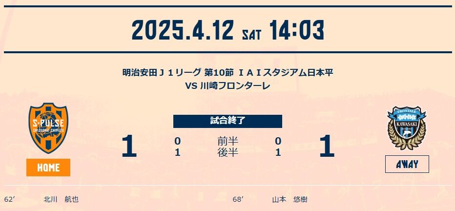 前節、FC東京は途中出場の俵積田の大活躍で終盤3得点を重ねて快勝していたので、この清水戦でも俵積田が途中投入された時点の戦況次第では脅威になる恐れがあった。しかし、60分に彼が出てきた時点で、すでに清水がリードしていたので、清水はブロックを組んで待ち構える形となっており、俵積田が使うスペースは失われていた。同点とか清水ビハインドで終盤に彼が出てきて、間延びしたスペースを使われたら餌食になった可能性が高いが、そう考えるとやはり先制点は大事である。